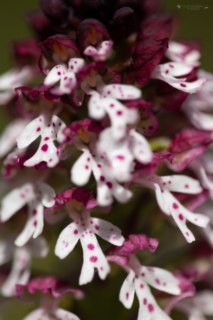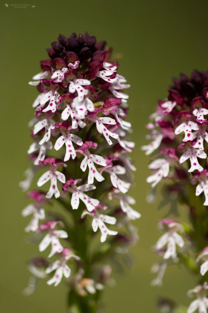 Ik vermoed toch vooral door de vlinderdip van eind mei en begin juni zagen we erg weinig vlinders. Het was zoeken om er überhaupt eentje te zien. Heel af en toe zagen we een flink versleten kalkgraslanddikkopje. Wel een leuke soort. Dat dan weer wel. Maar de orchideeën waren pas echt gaaf. We zagen er zeven soorten en door gebrek aan kennis vermoed ik dat we wel het een en ander over het hoofd gezien hebben. Er waren er zo te zien ook al een heel aantal uitgebloeid, geen idee welke dat waren. Maar wat we zagen was al geweldig. Mooie exemplaren ook. De soorten die we massaal zagen waren de bergnachtorchis en grote muggenorchis.