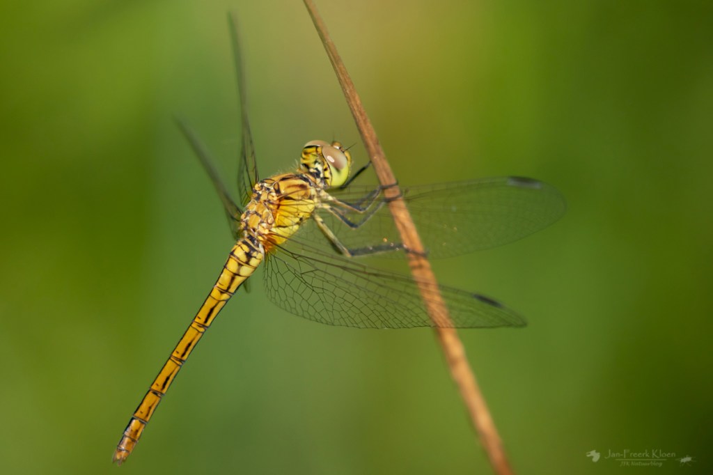 Eind juni heb ik me weer eens een dagje op Kwintelooyen bij Veenendaal vermaakt. Het gebied is wat libellen betreft absoluut mijn favoriet in de nabije omgeving van Wageningen. Waarom? De vennen zijn mooi en zeer geschikt voor véél soorten libellen én de koeien raggen zo door het gebied rond dat ik me totaal niet schuldig voel als ik het zelf ook doe. En daar houd ik van.