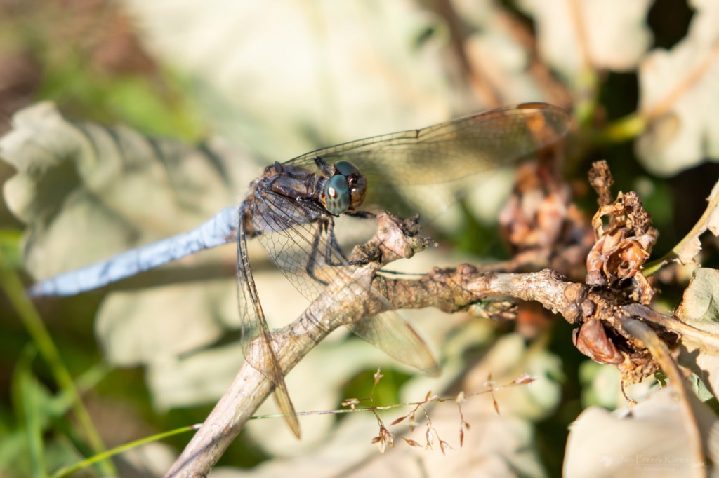 Maar afleiding was ook een factor tijdens deze ronde. Het begon al bij de libellen. Dat waren er véél! Vooral algemene soorten, maar ik zag ook een mannetje beekoeverlibel, een soort die absoluut niet in dit gebied thuishoort. Al is het maar vanwege het gebrek aan stromend water. Maar ik vond hem leuk en hij liet zich goed zien! Het stromend water zal hij later wel weer opzoeken als hij verder zwerft.