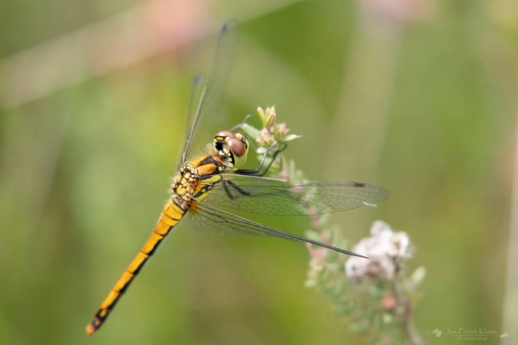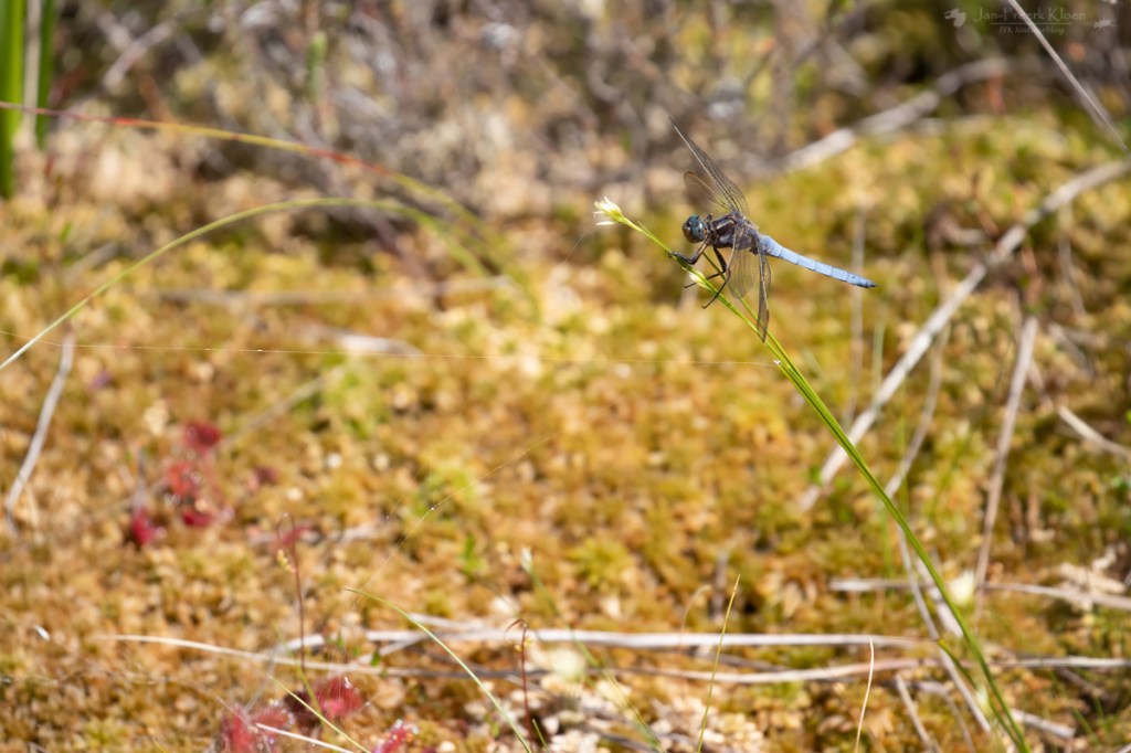 De venglazenmaker die ik hoopte te zien zagen we helaas niet. Het gaat slecht met die soort in Nederland. Vorig jaar zag ik een aantal exemplaren tijdens de reptielentelling in de zomer, maar het worden er steeds minder. Ik vrees dat het zo’n beetje einde verhaal is in dit gebied. Wel zagen we nog enkele zwarte heidelibellen en nog een beekoeverlibel. Dat leidde de pijn van de venglazenmaker een beetje af.