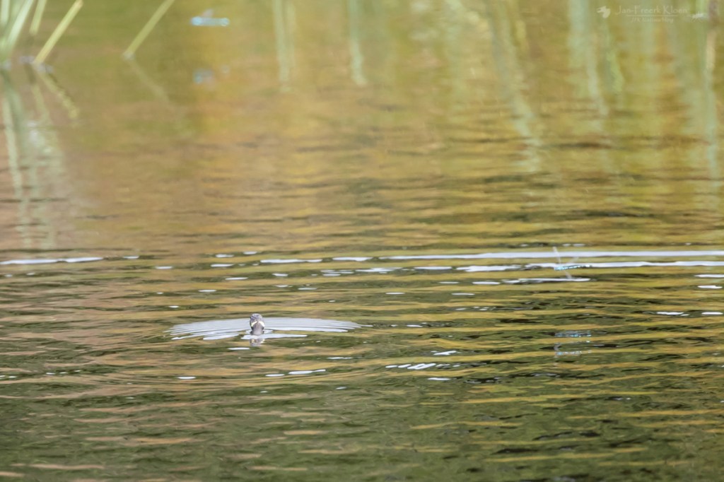 We sloten de dag af met nog een laatste ringslang die vanaf de oever het water in dook en onder water een stuk van mij af zwom. Ik kon hem vanaf mijn plekje hoog op de oever lang volgen. Pas tientallen meters verderop kwam zijn kop boven water en zag ik hem aan de overkant tussen de waterplanten verdwijnen.