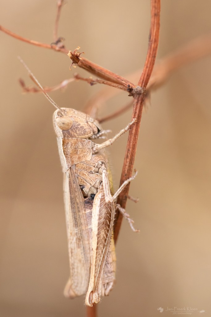 In een klein deel van de Ooijpolder leeft de enige binnenlandse populatie duinsabelsprinkhanen. Kleine, stevige dieren, met lange poten, sprieten en vleugels. En een geweldige schutkleur, waardoor ze nog niet zo makkelijk te vinden zijn. Gelukkig lukte dit op dag 2 wel. We moesten er even voor zoeken, maar toen we het goeie plekje gevonden hadden ging het hard. We zagen er zelfs enkele tientallen.