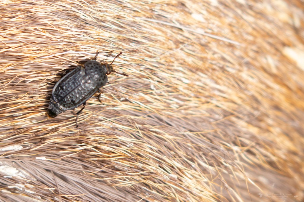 Op zaterdag kregen we een rondleiding van Thijmen in een gebied dat slechts enkele maanden terug tot natuurgebied gepromoveerd is, vanuit een monocultureel grasland. Nu al was de invloed van ARK enorm. Sloten die voor afwatering dienden waren grotendeels gedempt waardoor het gebied veel natter was dan voorheen, er zijn plassen uitgegraven en dat resulteerde in een paartje kleine plevieren, verschillende kieviten, bosruiters, groenpootruiters en witgatjes die er foerageerden. Aangereden wild wordt in het gebied teruggegeven aan de natuur en levert voedsel voor de oranje aaskever en rimpelige aaskever, doodgraver en diverse andere insecten die de afbraak verzorgen. Het oranjetipje fladdert rond op de pinksterbloemen en een paartje geelgorzen liet zich mooi zien.
