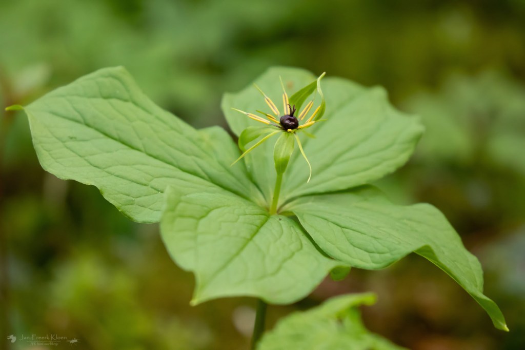 In het naastgelegen perceel kregen we als kers op de taart de zeldzame eenbes te zien, die in het rabattenbos groeit en prachtig in bloei stond.