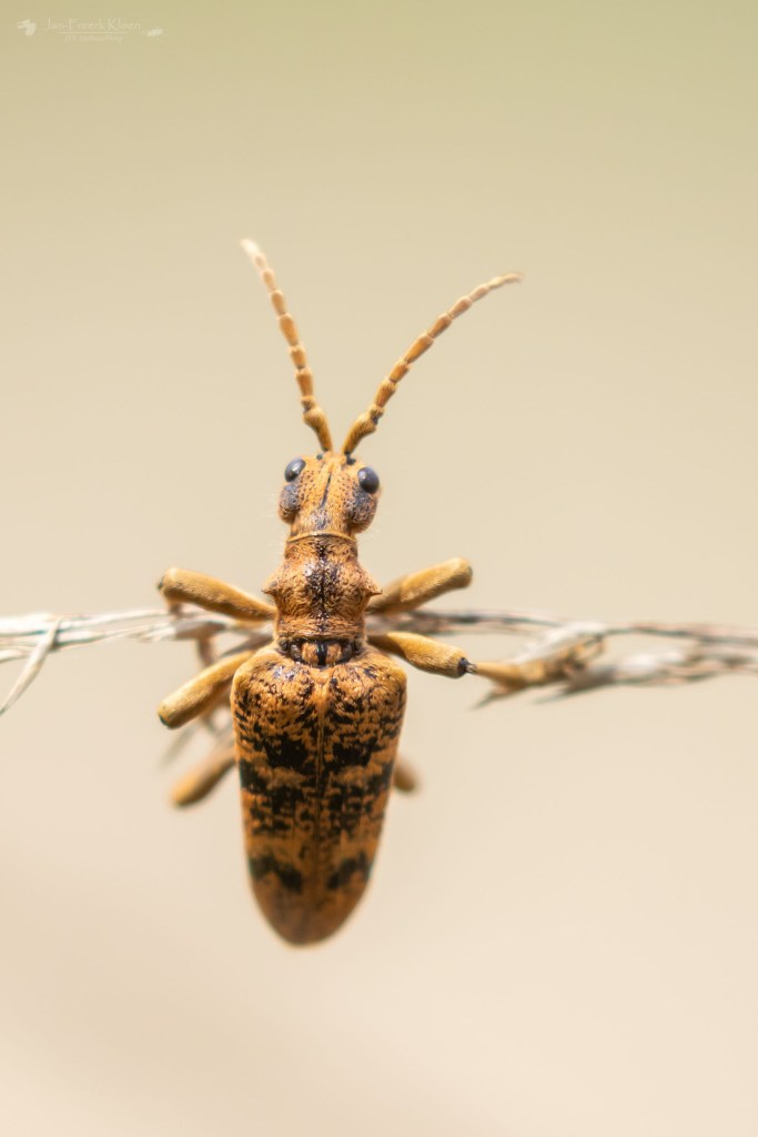 Verder hadden we het rondje inmiddels gevuld met een redelijk aantal noordse witsnuitlibellen (steeds zeldzamer in de zuidelijke helft van Nederland en op de Veluwe), een prachtige grote ribbelboktor en een dikke rugstreeppad. Die had nog niet eerder gezien in het gebied. Ook erg de moeite waard dus! De grootste opwinding was toen ik dacht een vrouwtje maanwaterjuffer te zien, de eerste in vijf jaar in het gebied. Helaas bleek het een enorm afwijkende watersnuffel te zijn, veel donkerder dan normaal en met een heel bescheiden schouderstreep. Ik werd behoorlijk in de maling genomen…