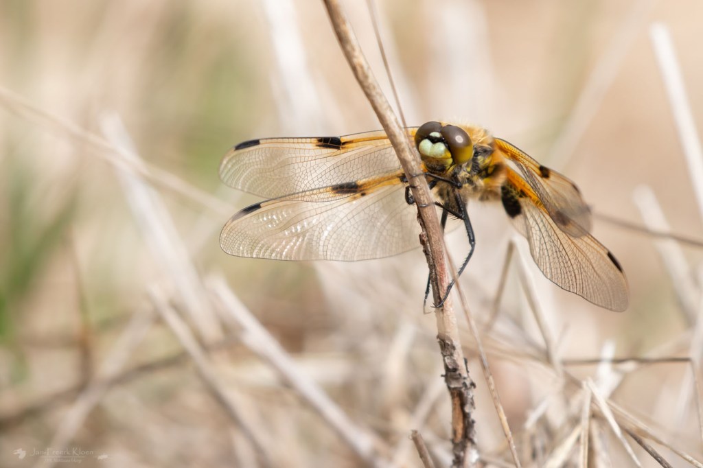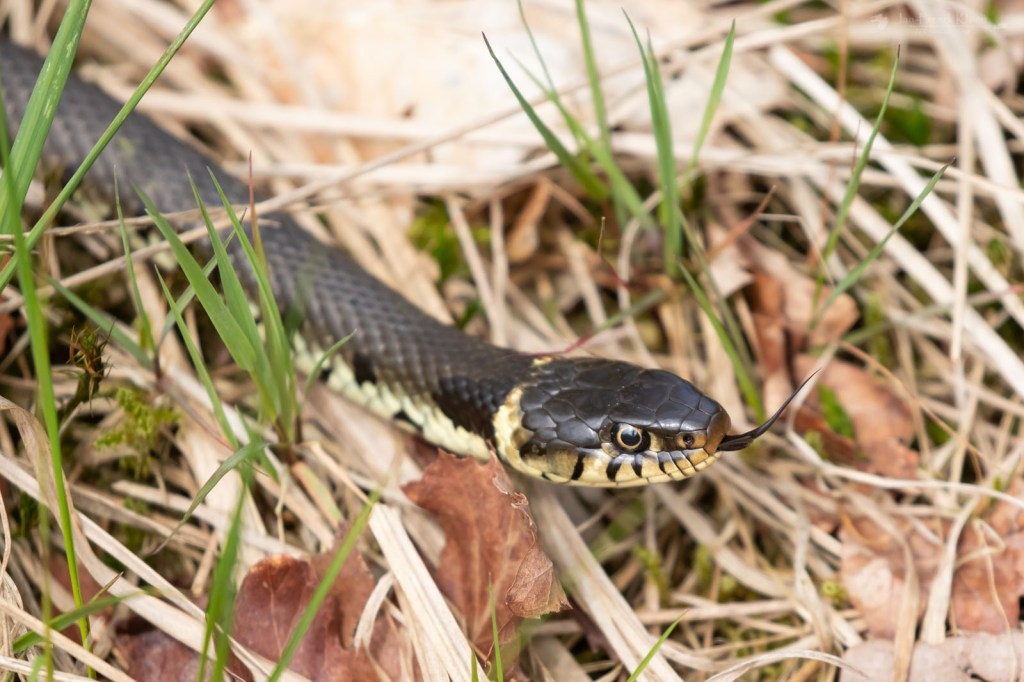 Al helemaal in mijn nopjes reed ik naar het volgende gebied, waar ik Gijs liet kennismaken met de vele libellen. De telronde duurde daardoor iets langer, maar dat was het waard. Het was inmiddels wat warm voor reptielen, ze hoefden niet echt meer op te warmen. Toch zagen we nog een redelijk aantal zandhagedissen, een hazelworm, een adder en zes ringslangen. De laatste had een geniale truc in petto. Een groot vrouwtje leek rustig te zonnen, maar toen we een stap dichterbij kwamen ging de kop omhoog, nek breed en luid sissend deed ze een cobra na. Ze gleed snel door het gras, nog steeds in cobrahouding. Bij een boomstam keek ze nog één keer dreigend om en voor we met onze ogen konden knipperen was ze volledig onder de boomstam verdwenen. Wat een spektakel op het eind!