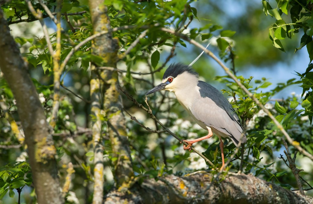 Ik heb best een beetje een zwak voor reigers gekregen, en dan met name de wat mysterieuze beesten. De roerdomp, het woudaapje en de kwak dus. Van die kleine reigertjes die lastig te vinden zijn (al valt dat met de kwak nog redelijk mee) en die door het het riet en de bomen klauteren. Daarbij is de kwak ook gewoon heel mooi. Ik heb ze in Hongarije ook gezien, maar daar waren ze erg schuw en heb ik ze niet heel goed kunnen bekijken. Hier viel het uiteindelijk mee, zij het van een afstandje aan de overkant van het water. De jongen wisten sowieso niet wat bang zijn is, die zaten gewoon open en bloot een beetje te zonnen en te wachten tot er eten zou komen. Eén volwassen kwak kwam nog even mooi vooraan zitten, de rest zat meer tussen de struiken en op de nesten.