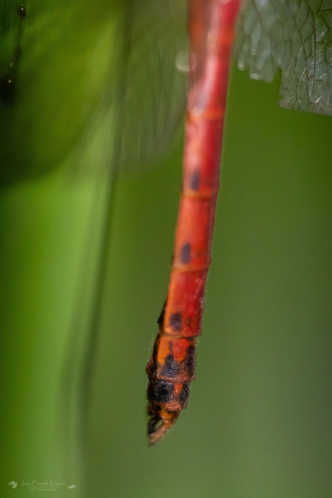 Na een paar uur gaven we het op en gingen we voor deel twee naar een bootverhuur, maar niet zonder in de wegberm even te stoppen om naar de kempense heidelibel te kijken. Een toonbeeld van een typische Weerribbensoort, al is dat nog niet zo lang het geval. Oorspronkelijk kwam de soort vooral in de Kempen voor, maar een tijd terug is hij in de Weerribben opgedoken. Daar is hij in korte tijd zo succesvol geworden dat hij plaatselijk absoluut niet meer zeldzaam is en wellicht in deze tijd van het jaar zelfs de algemeenste soort in de wijde omgeving. Daar blijft het dan ook bij, want buiten de Weerribben en een ruime omgeving ervan is het nog altijd een zeer zeldzame soort. Een specialist dus, die profiteert van het stabiele milieu van het laagveenmoeras.