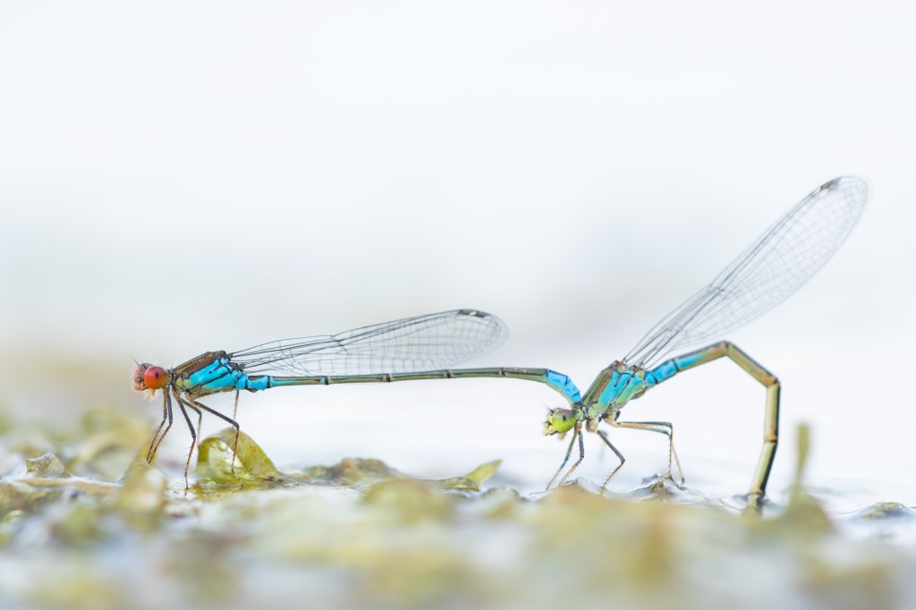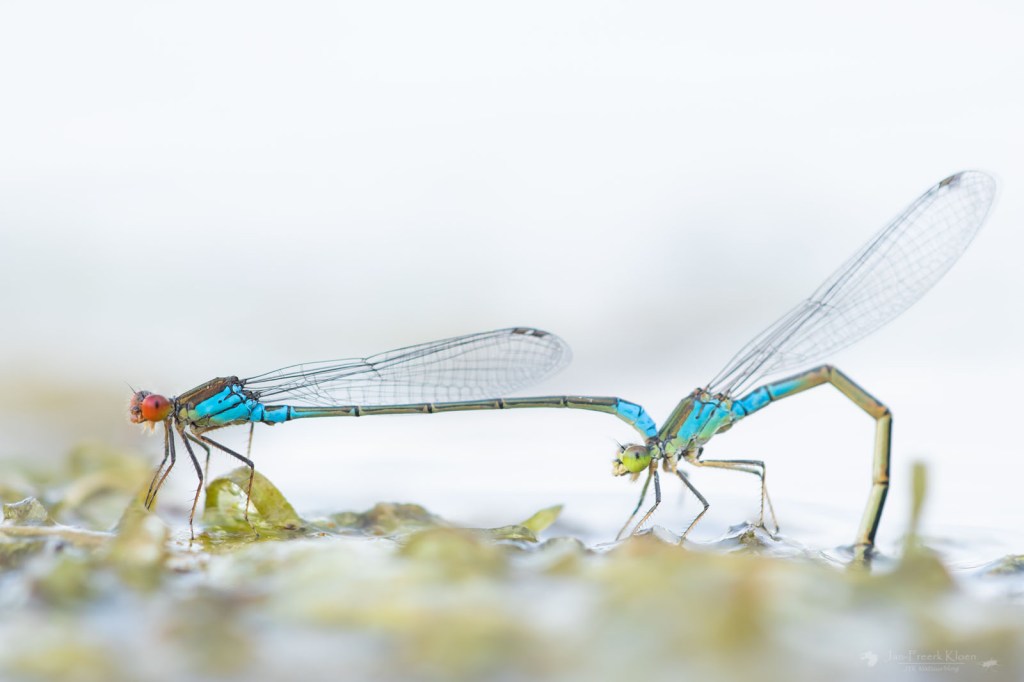 Zeker niet zeldzaam maar een ontzettend leuke libel om te fotograferen. Bij bewolkt weer zijn vroege glazenmakers zó rustig. Ze hangen lang stil op één plek om te patrouilleren en zijn daardoor ideaal om even weer te oefenen met libellen in vlucht op de foto krijgen. Foto’s van eind juni en begin juli rondom Wageningen.— Klik op een foto om de serie te openen en gebruik de pijltjes naar rechts om de foto’s groter te zien.Bij de zomer horen zonder twijfel de heidelibellen. Pas eind mei of in juni kan je de allereerste vinden, de grote aantallen pas in juli. Op Kwintelooyen kreeg ik bij rustig weer een heleboel kakelverse zuidelijke heidelibellen voor de lens, die ik van alle hoeken en alle afstanden op de plaat zette. Alles om zo veel mogelijk kenmerken erop te krijgen waaronder het nauwelijks getekende borststuk, de korte snor, grotendeels gele poten en de gele basis van de 2e en 4e ader van de vleugels. Geen kenmerk maar wel mooi: de prachtig glanzende vleugels. — Klik op een foto om de serie te openen en gebruik de pijltjes naar rechts om de foto’s groter te zien.Denk je aan zomerlibellen, dan denk je ook aan de kleine roodoogjuffer. Zeer algemeen, ook binnen de bebouwde kom. Bij warm weer zetten ze zo’n beetje in zwermen van tandems hun eitjes af op drijvende waterplanten. Of eigenlijk op alles wat drijft, het maakt niet uit. Dit tafereel zag ik begin juli aan de rand van Wageningen bij de Nijlantsingel. Of eigenlijk zag ik dit tafereel zo’n beetje elke dag bij elk willekeurige water in Wageningen, maar hier zijn de foto’s gemaakt.— Klik op een foto om de serie te openen en gebruik de pijltjes naar rechts om de foto’s groter te zien.Ik dacht eigenlijk dat de koraaljuffer best zeldzaam was in mijn omgeving, maar half augustus zag ik er tientallen bij een willekeurige stadsvijver in een Edese woonwijk. Het was niet eens echt natuurlijk aangelegd. Echt een vreemde plek. Massaal aan de eileg allemaal, dus volgend jaar nog maar eens een keertje kijken.In oktober zit het libellenseizoen er echt bijna op, behalve dat er deze zomer allemaal Kempense heidelibellen zijn uitgeslopen in de Binnenveldse Hooilanden in Wageningen. Deze zeldzaamheid is bijna (zo niet helemaal) uitgestorven in de Kempen, maar heeft een enorm bolwerk opgebouwd in en rond de Weerribben. Wordt Wageningen het volgende bolwerk?— Klik op een foto om de serie te openen en gebruik de pijltjes naar rechts om de foto’s groter te zien.