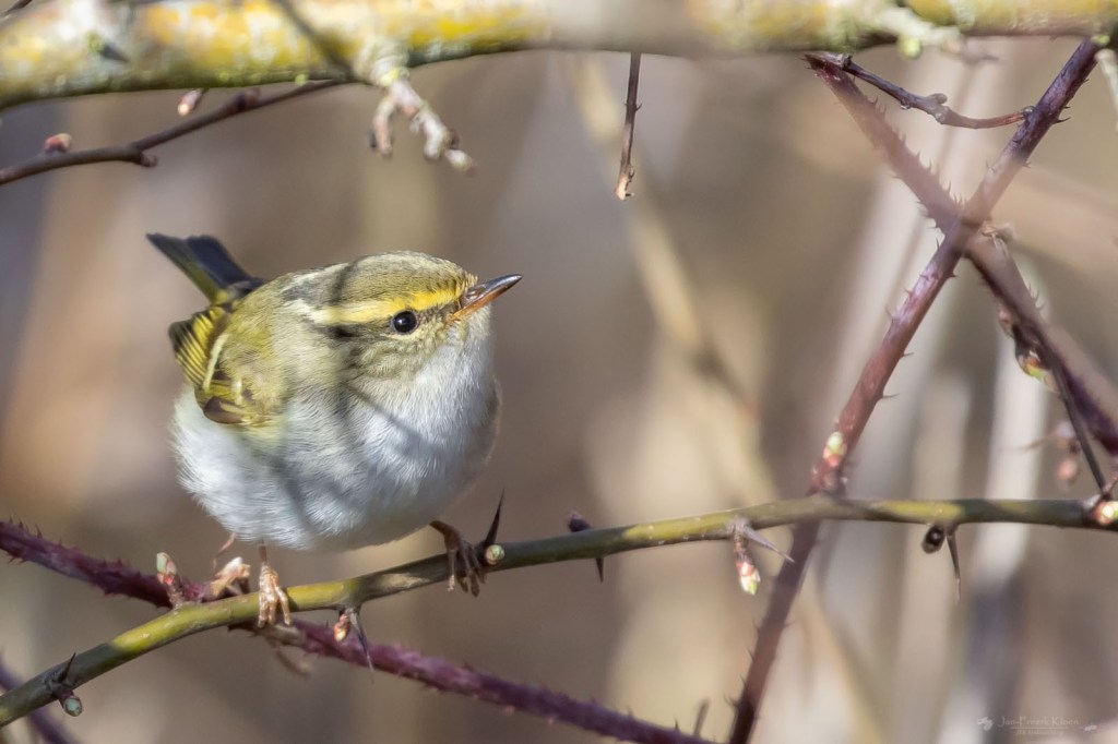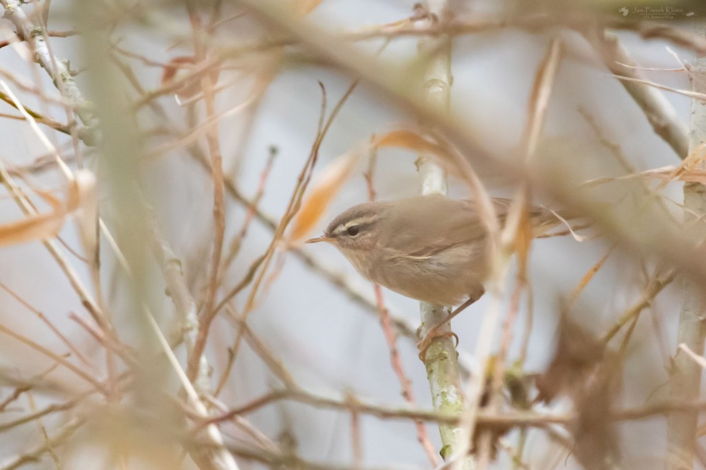 Gisteren ging ik met twee vrienden naar Utrecht, waar een tijdje geleden een Humes bladkoning opdook in een woonwijk. Ik heb hem al een paar keer gezien toen hij overwinterde in Wageningen, maar dat was een vrijwel onmogelijk exemplaar om te fotograferen. Die in Utrecht leek beter te doen. Het leuke van boszangers vind ik dat het eigenlijk heel goed te doen is om ze mooi op de foto te krijgen, maar dat het totaal niet zo lijkt en dat je er wel wat geduld en koppigheid voor nodig hebt. Ze zijn namelijk niet schuw en komen vaak genoeg vlak voor de lens langs. Maar er is wel een probleempje. Stilzitten staat niet in hun woordenboek. Het zijn echte stuiterballen. En daar was de Humes bladkoning in Utrecht een schoolvoorbeeld van.
