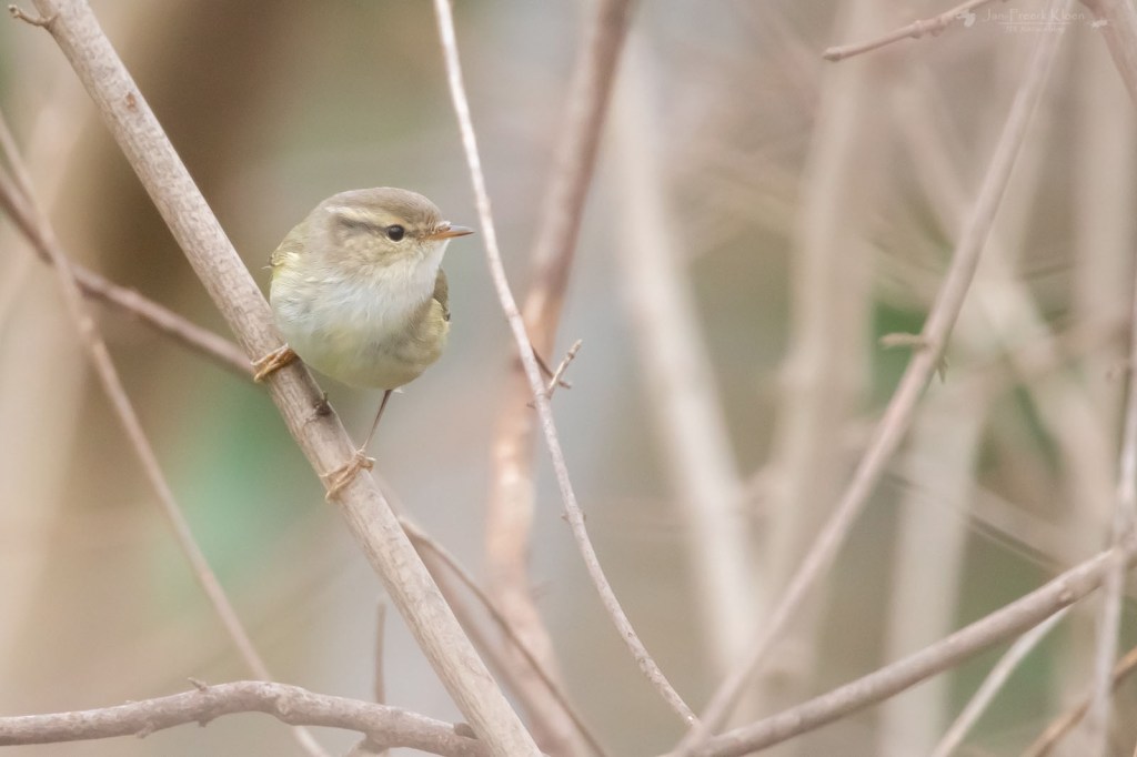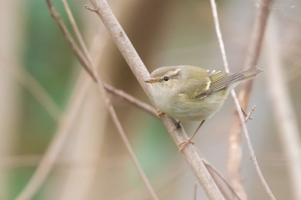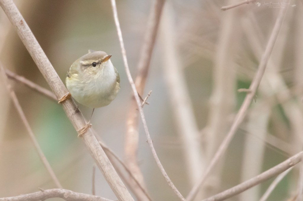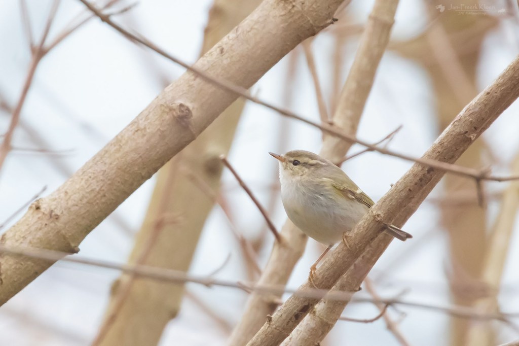 En inderdaad: alle boszangers zijn ontzettend lastig uit elkaar te houden. Om het makkelijk te maken zijn de drie algemeenste al moeilijk te onderscheiden als je ze ziet: de tjiftjaf, fitis en fluiter. Het rijtje staat op volgorde van algemeen naar (enigszins) zeldzaam en van bruin naar geel. Als je ze hoort is het makkelijker: de tjiftjaf zingt zijn eigen naam, de fitis heeft een fluitend, aflopend melodietje en de fluiter produceert naast enkele fluittonen vooral ook het opvallende geluid van stuiterende knikkertjes. Simpel toch? Maar heb je wel eens gehoord van de Siberische tjiftjaf, bladkoning, Humes bladkoning, bruine boszanger, Pallas’ boszanger en bergfluiter? Dat zijn de meest voorkomende dwaalgasten. En dat zijn nog maar de soorten die ik tot nu toe in Nederland heb gezien. Er zijn nog veel meer echte zeldzaamheden die zo nu en dan eens opduiken.