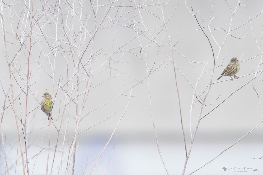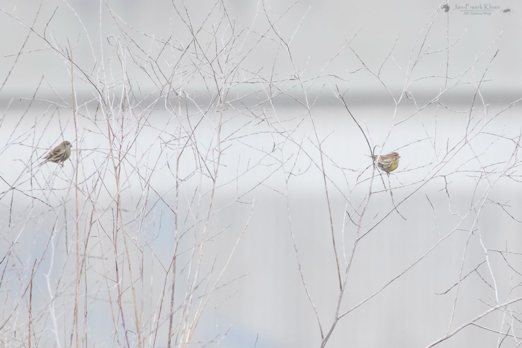 We sloten de dag af in Vleuten, waar op een braakliggend terreintje twee Europese kanaries rondhingen. Een vrij zeldzame overwinteraar in Nederland. Met wat geduld kregen we deze beestjes op enige afstand leuk te zien.