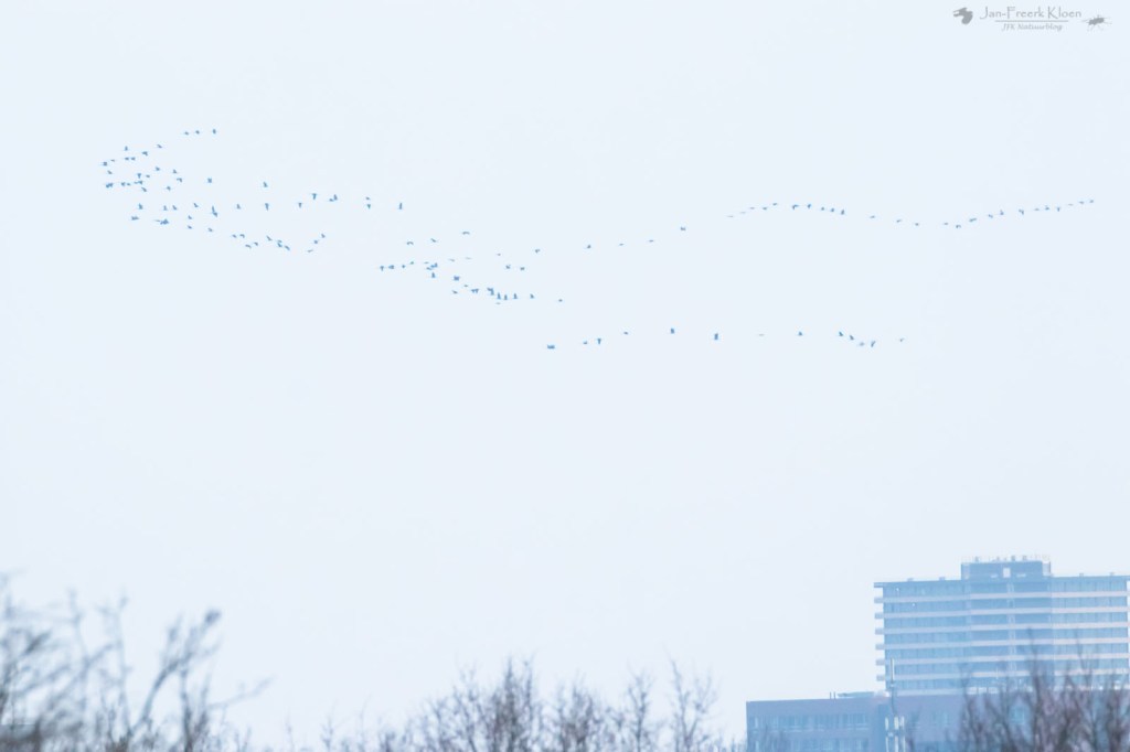 Dankjewel! Het tellen was zeker nog een dingetje. Het is heel lastig om overzicht te krijgen over zo’n grote groep, nog los van dat ze continu aan het hergroeperen waren. En dan heb je natuurlijk nog vogels die bijna precies achter elkaar vliegen. Er zit wel een onzekerheidsmarge in de telling uiteraard.