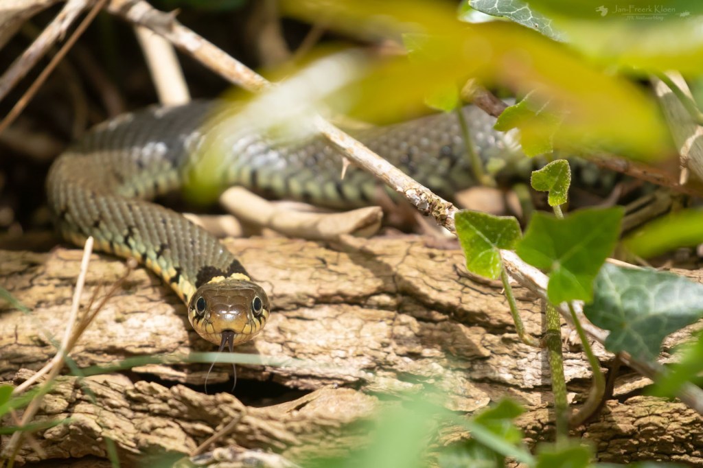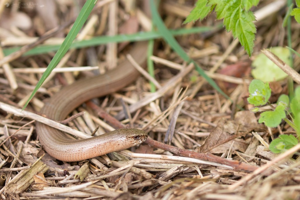 Op deze mooie zonnige, nog wat vochtige maar warme ochtend bleef de teller maar oplopen. Natuurlijk gesteund door wat extra ogen, maar prettig genoeg voor ons ego ontdekten mijn medeteller en ik de meeste reptielen. Omdat het nog zo vochtig maar tegelijk wel warm was lieten naast ringslangen ook de hazelwormen zich goed zien. Dat is een zeldzame combi, aangezien de ringslang meer van volledig zonnig, droog weer houdt en de hazelworm van vochtig, broeierig en niet te zonnig weer. Maar vandaag was zo’n zeldzame dag dat beide soorten uitgebreid lagen te zonnen. Het hielp vast ook dat het de afgelopen periode vaak minder goed weer was. De reptielen zaten echt te wachten op wat zon.
