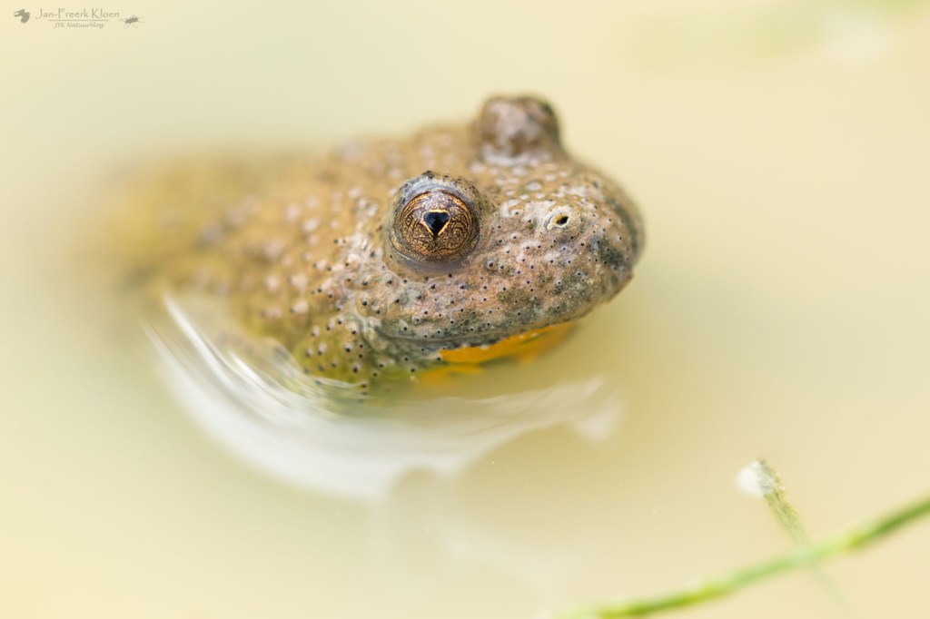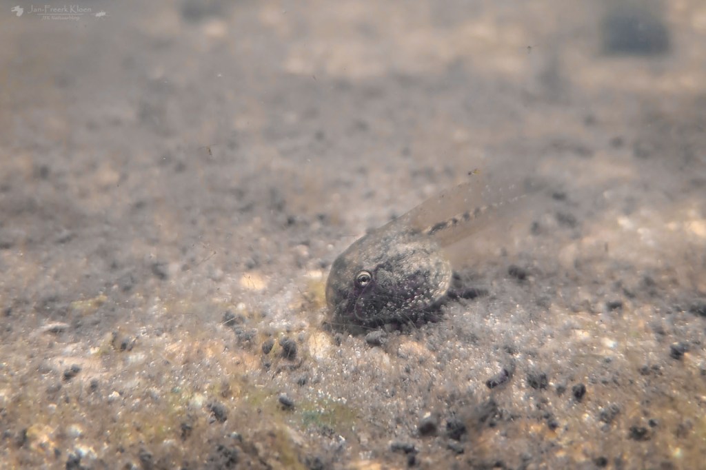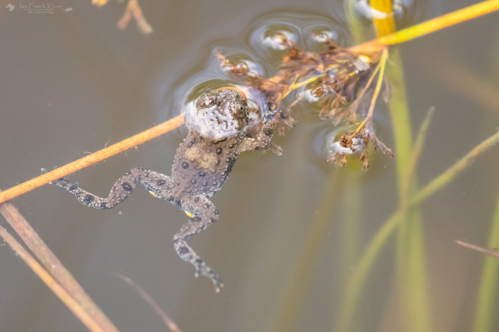 Wat wel erg leuk was, was dat er heel veel kleine geelbuikvuurpadjes rondliepen. Het waren nét geen kikkervisjes meer. Ze waren heel klein nog.