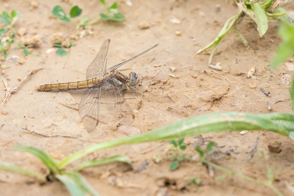 Nadat we een op het asfalt opwarmende zuidelijke oeverlibel op de foto hadden gezet daalden we met de trap af in de ENCI-groeve. In de luwte en in de zon was het lekker warm en de watersnuffels, vuurlibellen en boswitjes vlogen lekker rond. De bruinrode wespenorchis die we zochten vonden we ook, maar die waren helaas al uitgebloeid. We eindigden in Chalet d’n Observant voor een Limburgse vlaai met cappuccino. Toen we tien tellen binnen zaten barstte er een enorme bui los waarvan we dachten dat hij ten oosten van ons langs zou trekken.