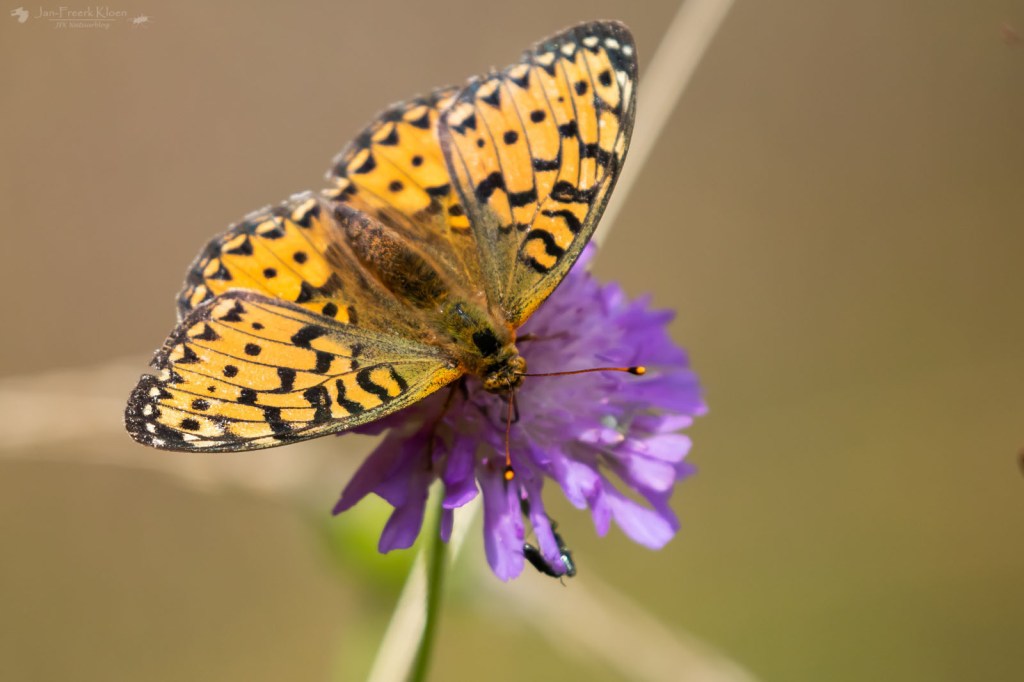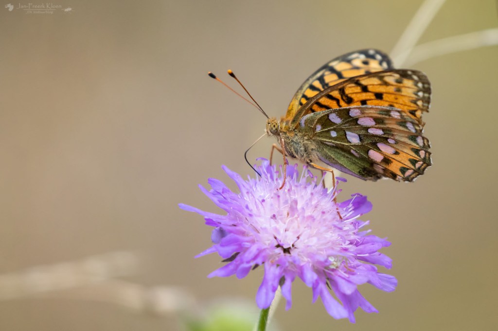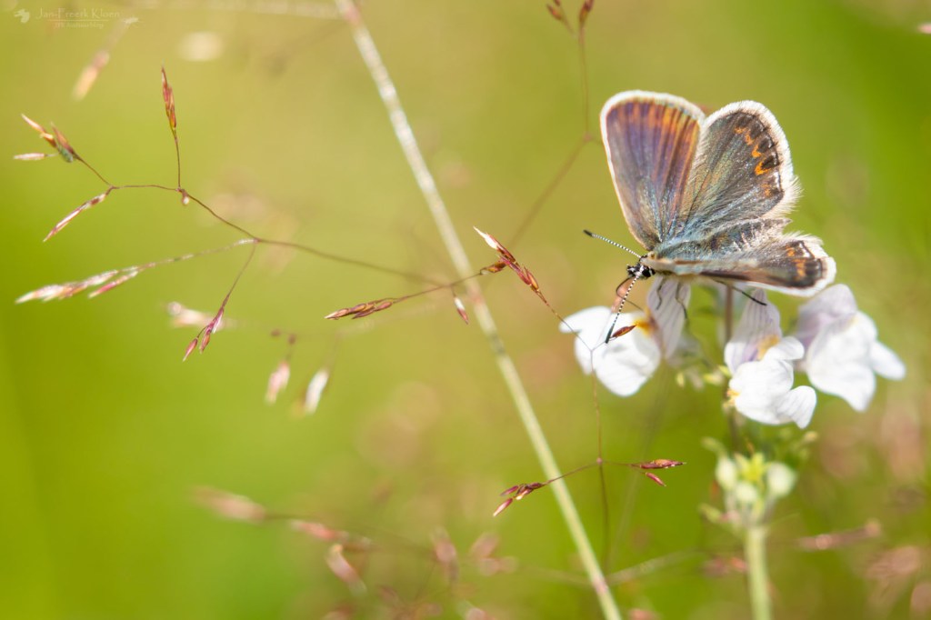 De fietstocht naar het natuurgebied toe was eigenlijk al leuk genoeg. In de berm zagen we veel vlinders. In de zon zagen we heideblauwtjes, het morgenrood, grote parelmoervlinders, purperstreepparelmoervlinders, bosparelmoervlinders en keizersmantels.