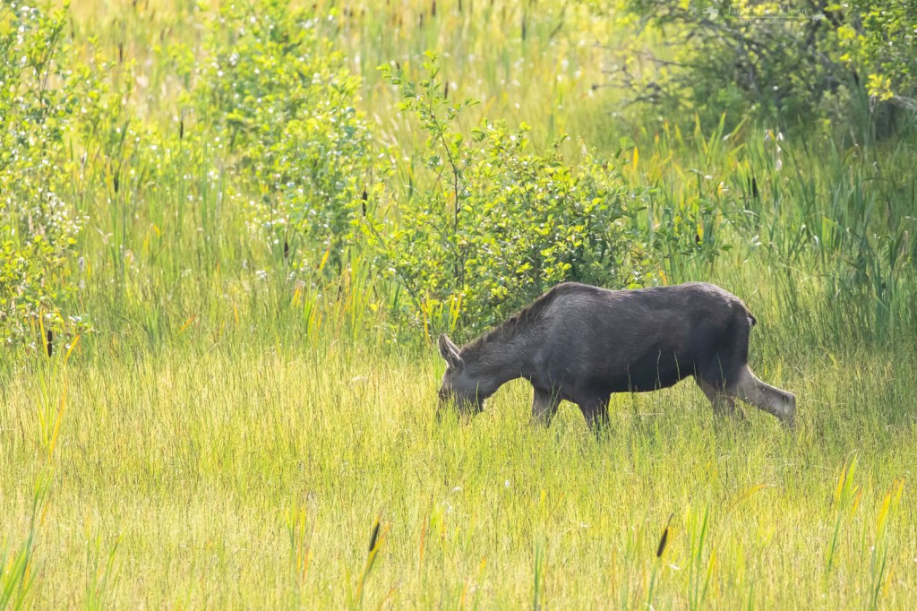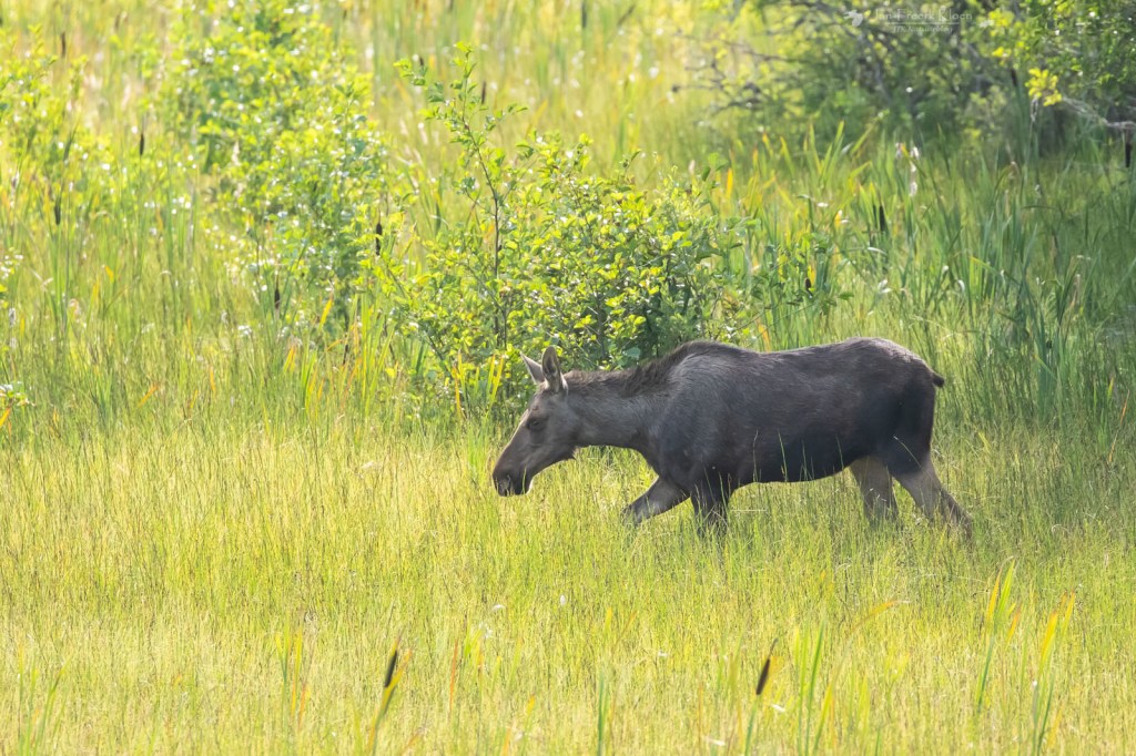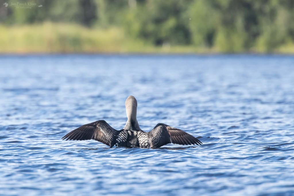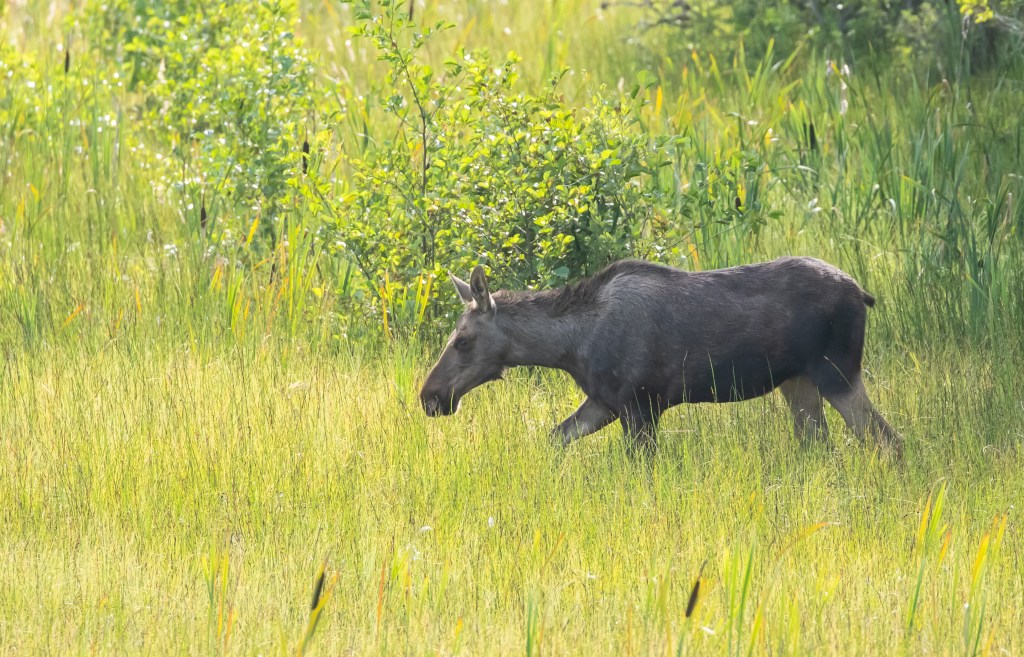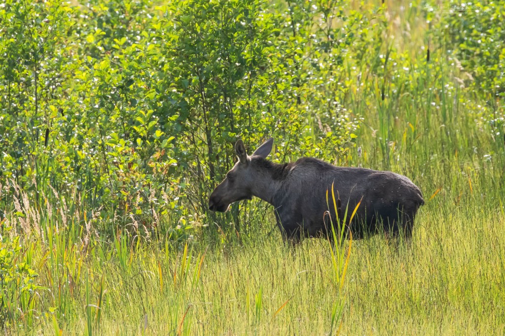 Maar eenmaal terug op de toren begon het pas echt. Ik hield me bezig met wat rondvliegende venglazenmakers boven ons in de bosrand. De Zweedse vogelaar verliet net de toren en Hendrike ontdekte een eland! Ja, eland nummer twee van deze vakantie. Hij sloop op zo’n honderd meter van ons vandaan van de bosrand naar de jonge berkenboompjes langs het water. We zagen hem een paar tellen heel goed, maar al gauw verdween hij ook weer uit ons zicht. We hebben hem nog gezocht, maar niet kunnen vinden. Het grote beest wist ik zich goed te verstoppen tussen de kleine boompjes.