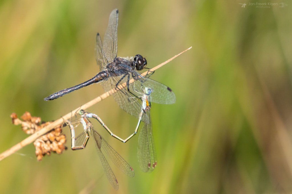 De zwarte heidelibel, een steeds zeldzamer worden de soort van vennen.— Klik op een foto om de serie te openen en gebruik de pijltjes naar rechts om de foto’s groter te zien.