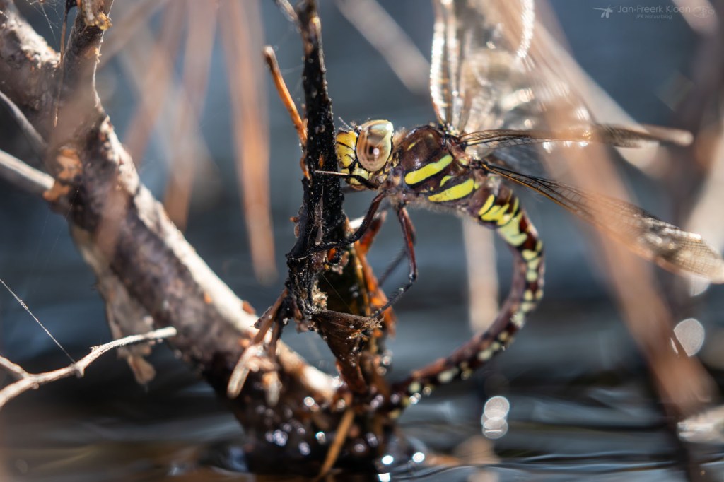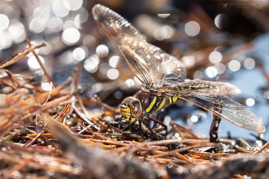 Weer terug bij de venglazenmakers op de Veluwe, met weer een nieuw bezoek aan het gebied. De eileggende vrouwtjes laten zich goed zien in het gebied, en dat zijn ook de venglazenmakers waar je de meeste kansen hebt om te experimenteren. De leukste plaatjes waren met tegenlicht én ringflitser, waardoor je de glimmers van het water op de achtergrond krijgt, maar de glazenmaker zelf ook goed belicht en daardoor herkenbaar is.