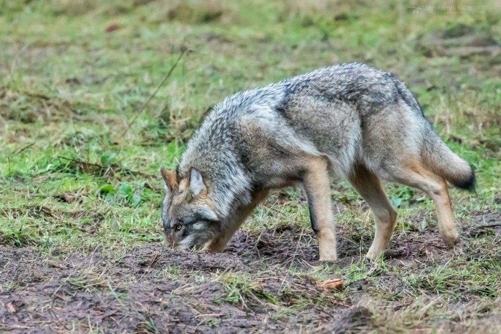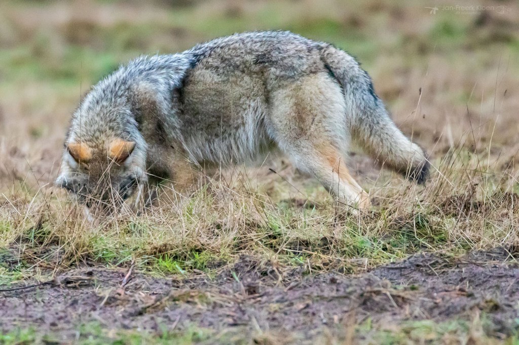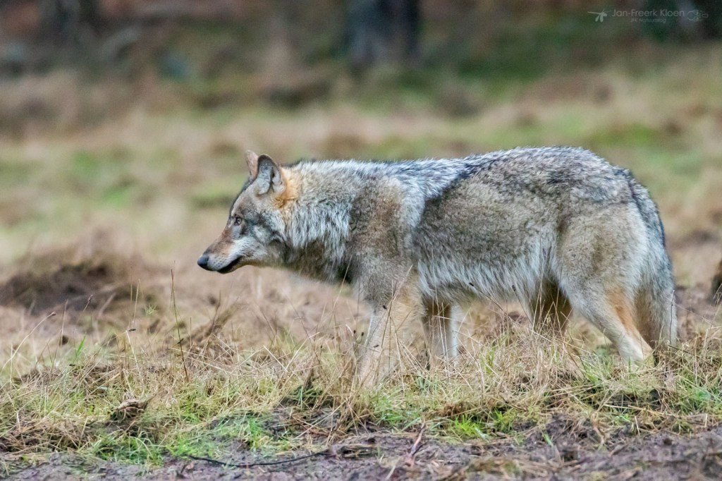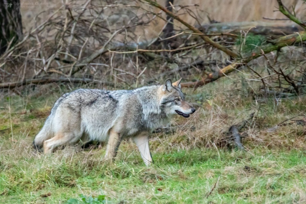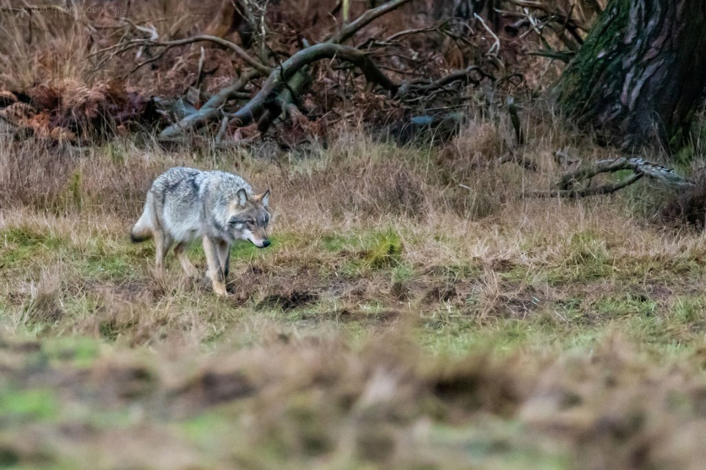 Het was een wat druilerige maandagmiddag. Niet echt vies weer, maar wel erg grauw en vochtig. Ik hoopte op een rustige middag in de natuur. Ik fietste een ronde vanuit huis, met camera paraat natuurlijk. Door wolvenleefgebied. Ik wist dat ik een redelijke kans maakte, want ze worden de laatste tijd vaker gezien. Maar daar tegenover staan vele dagen in de natuur waarin ik geen enkele wolf zag. Je moet heel veel geluk hebben.