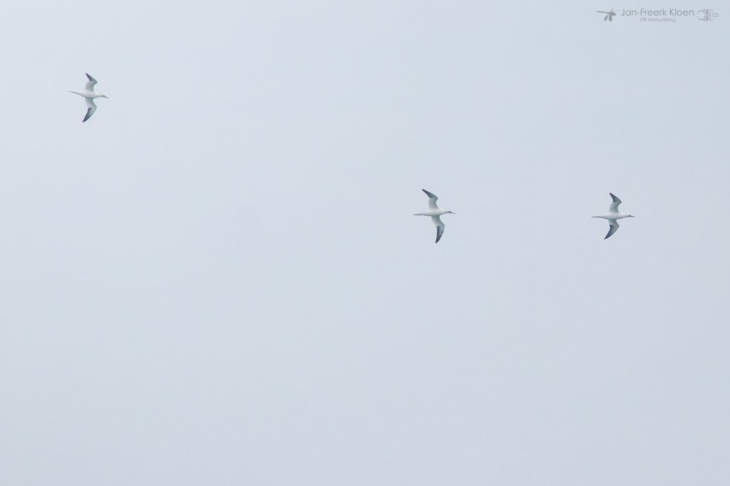 De leukste vogels zagen we bij paal 15 op het Noordzeestrand. Ondanks de aflandige wind en de tijd in het jaar zagen we meerdere Jan-van-genten naar het noorden trekken. We zagen er in een uur tijd een stuk of acht. Een deel van hen was niet eens echt ver weg en konden we mooi voorbij zien zeilen. Ook de roodkeelduikers die rondvlogen waren leuk. Beide soorten waren nieuw voor Ilse.