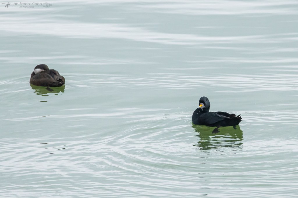 Ook op de rest van de pier kon ik me goed vermaken. Vele steenlopers en paarse strandlopers lieten zich zien. Vanaf het einde van de pier kon ik ver over zee kijken en ik was lang niet de enige vogelaar op deze prachtige dag. Vanaf hier kwamen er zwarte zee-eenden langsvliegen en er kwam een keer een zeekoet aan. Op grote afstand vlogen er enkele jan-van-genten langs.