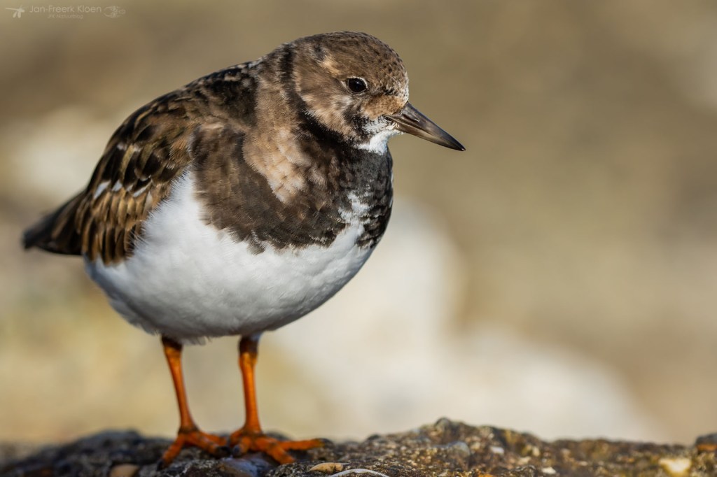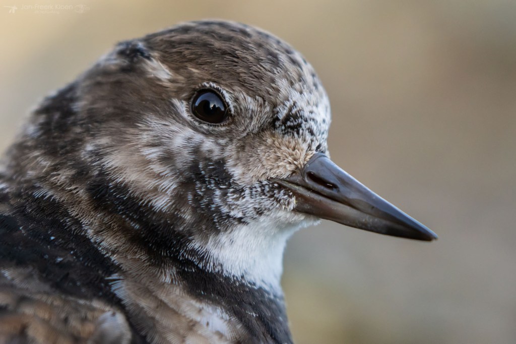 Toen ik op een groot rotsblok een boterhammetje zat te eten vonden twee steenlopers dat ook wel interessant. Beide kwamen op nog geen meter afstand zitten en eentje bleef daar ook langdurig zitten kijken. Hij leek niet per se geïnteresseerd in mijn brood, maar wellicht speelde dat toch een rol. Hij was verder niet opdringerig en liet zich mooi bekijken. Op een iets grotere afstand hadden vele tientallen drieteenstrandlopers een rustpauze ingelast.